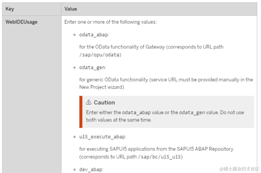 其中WebIDEUsage属性的值,除了odata_gen之外,还有odata_abap,ui5_execute_abap等选择。