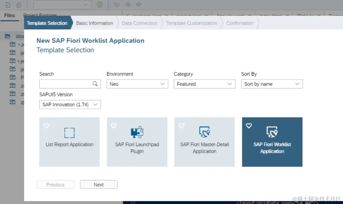 WebIDE里新建一个UI5应用,基于模板SAP Fiori Worklist Application创建。