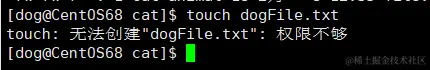 8、dog 用户尝试在 /home/cat 目录下创建文件 dogFile.txt。