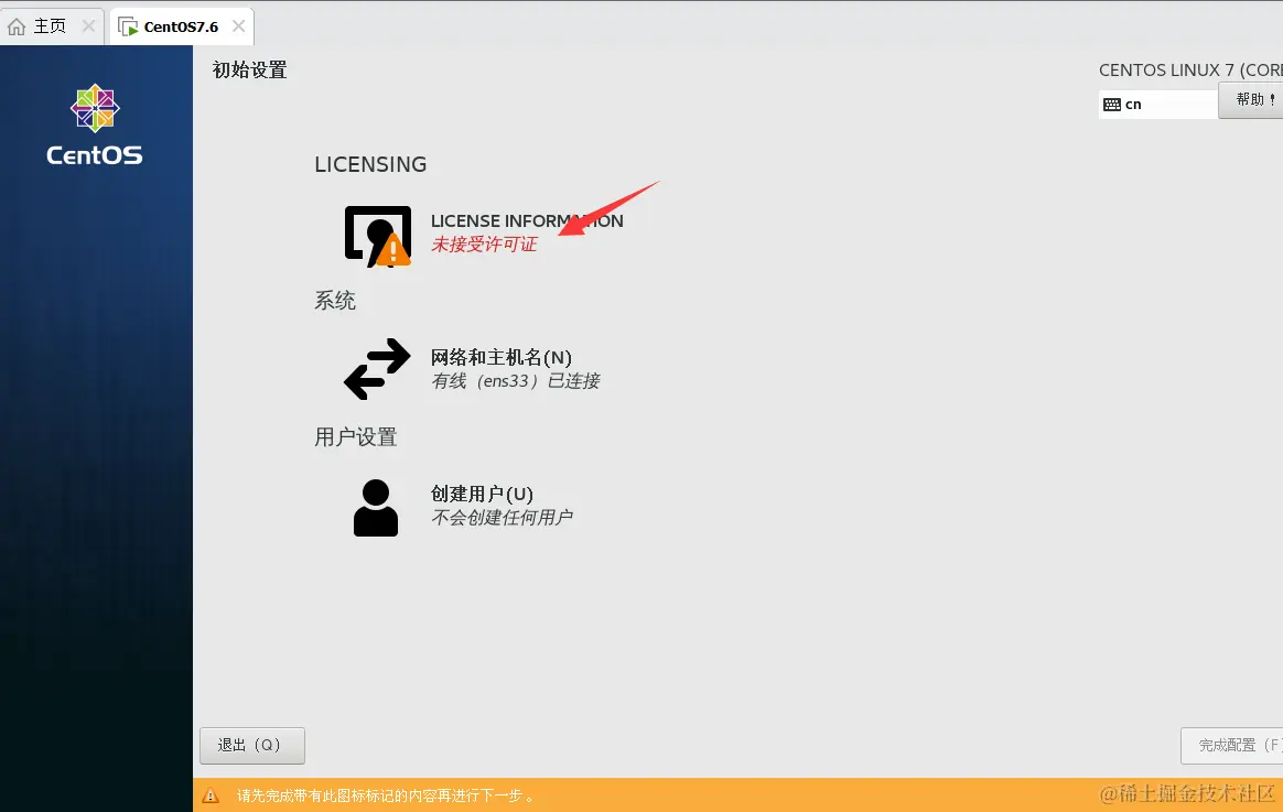 10、开启虚拟机,正式安装CentOS 7.6