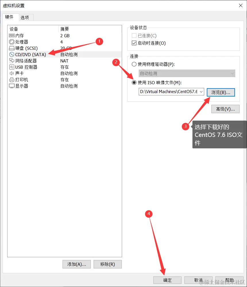 8、编辑虚拟机,挂载镜像文件。