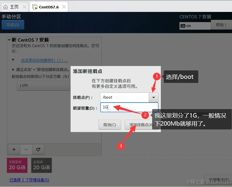 - 划分引导分区,/boot