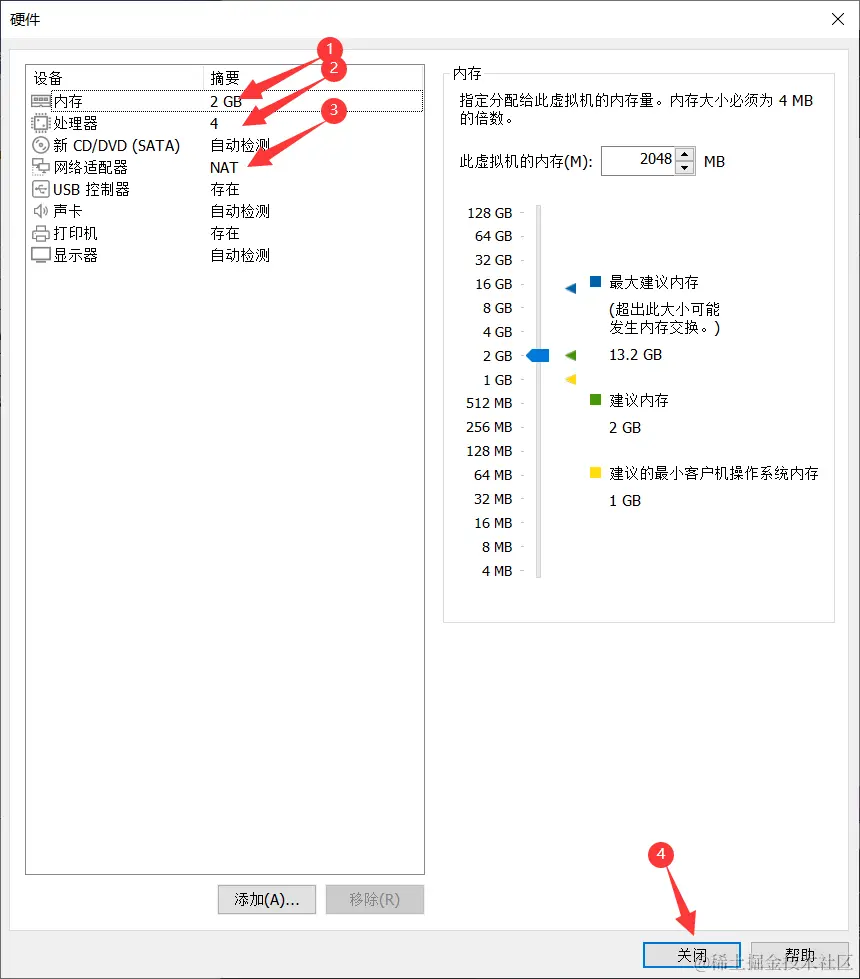 - 网络适配器建议选择 NAT。上面已经说了理由。
