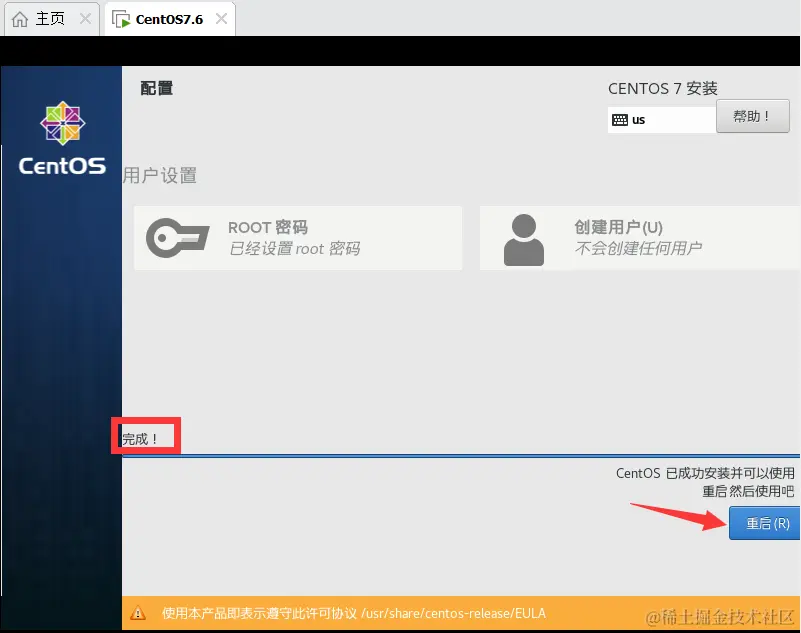 20、安装完成之后,重启,完成最后的配置即可。