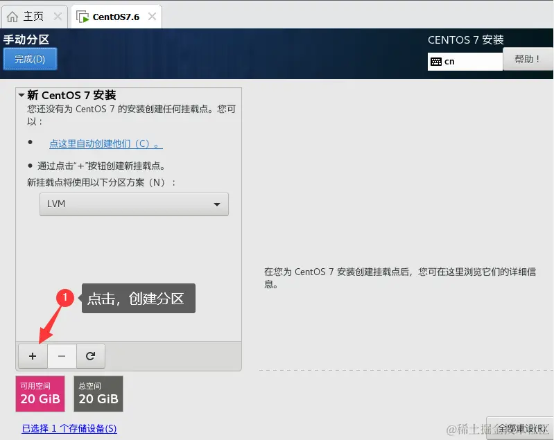 16、创建分区。