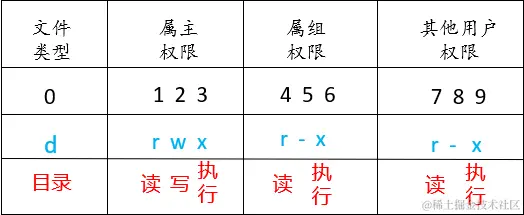 r:read,可读。ls 查看目录内容。w:write,可修改,可以在目录内创建、删除文件和重命名目录。x:execute,可进入该目录。