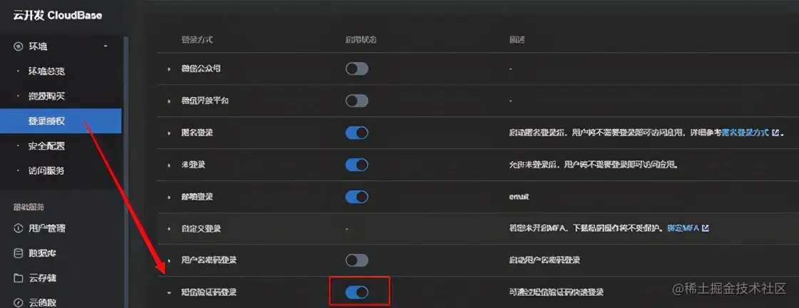 在控制台开启 “短信验证码登录” 的选项