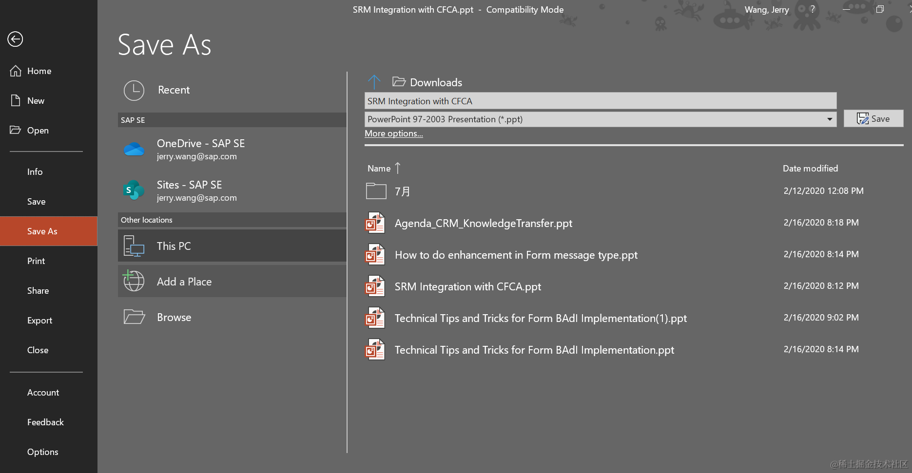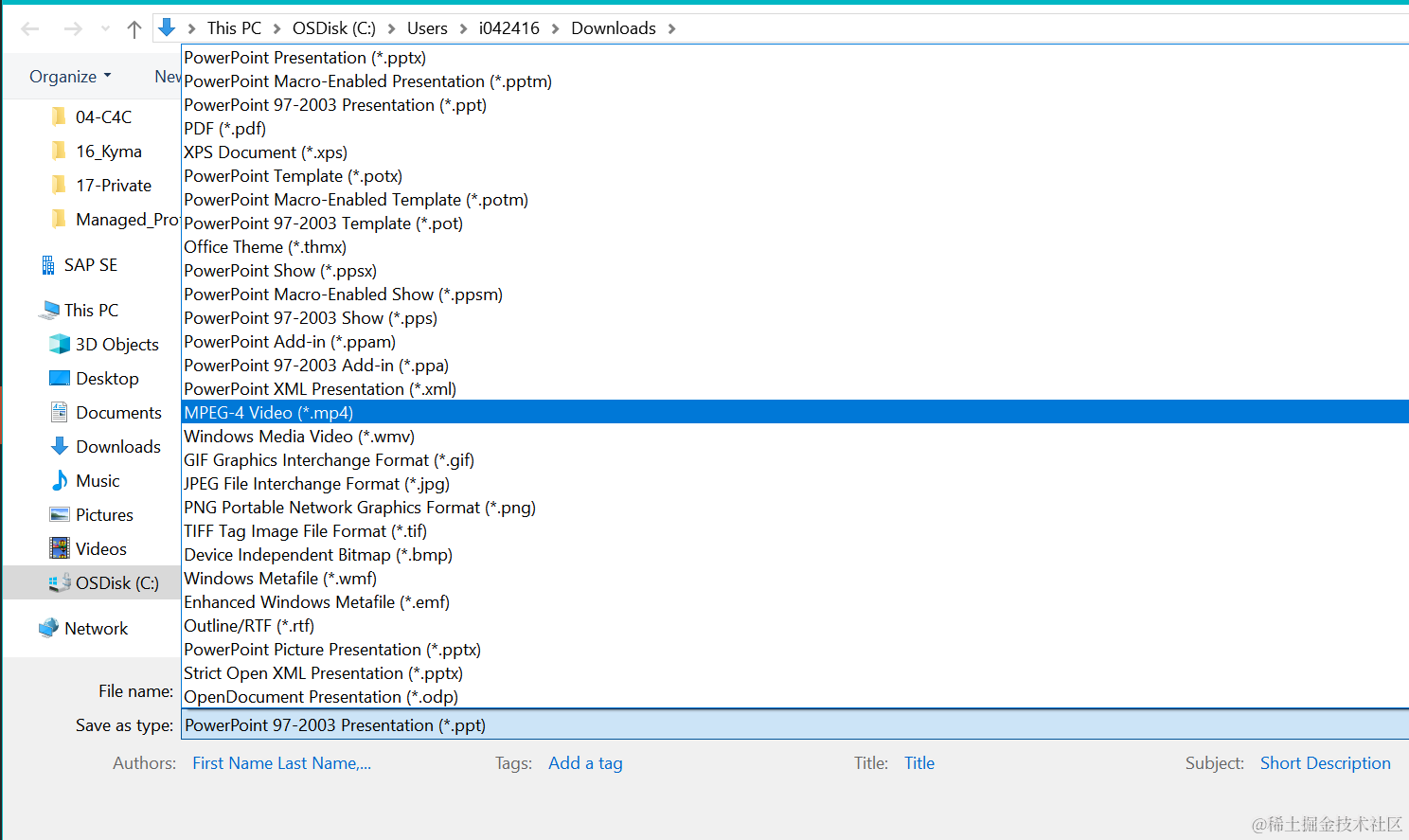 微软的ppt现在可以直接导出成可以播放的mp4了,非常方便 已注销 2021-04-26 76 阅读1分钟 直接在power point的save as按钮里, 选择导出成mp4文件即可: 我的一个11页的ppt,总共548kb, 导出成的mp4文件也不过10MB大: 要获取更多Jerry的原创文章,请关注公众号"汪子熙":