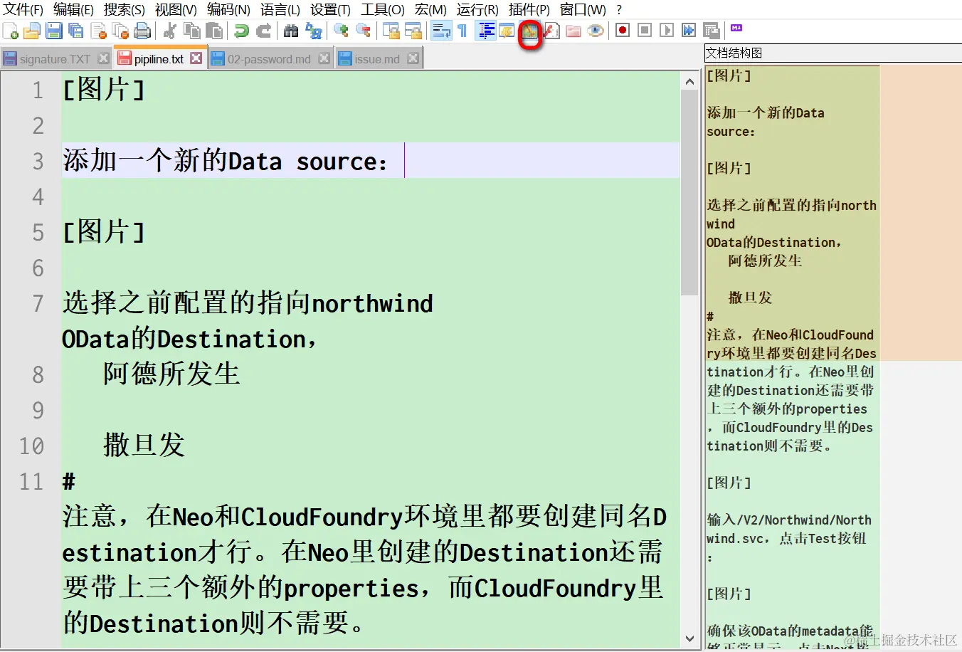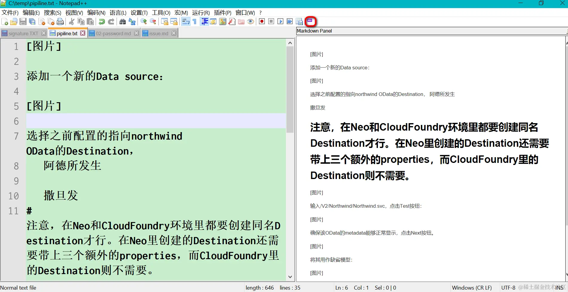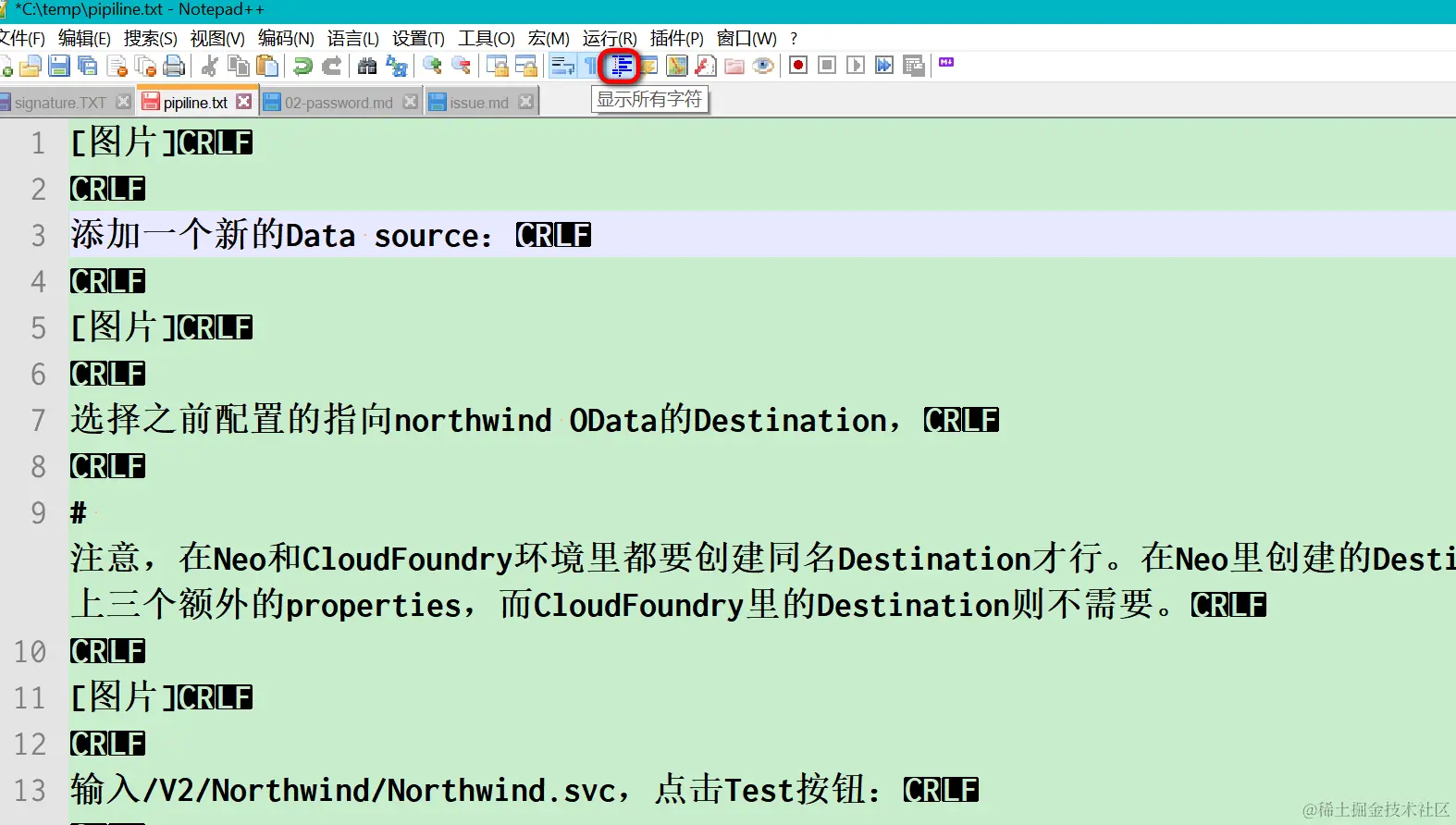 NOTEPAD++几个有用的工具栏按钮 已注销 2021-04-26 150 阅读1分钟 自动换行切换功能: 显示所有隐藏字符,比如回车换行CRLF: 显示文档结构图: markdown预览区域: 要获取更多Jerry的原创文章,请关注公众号"汪子熙":
