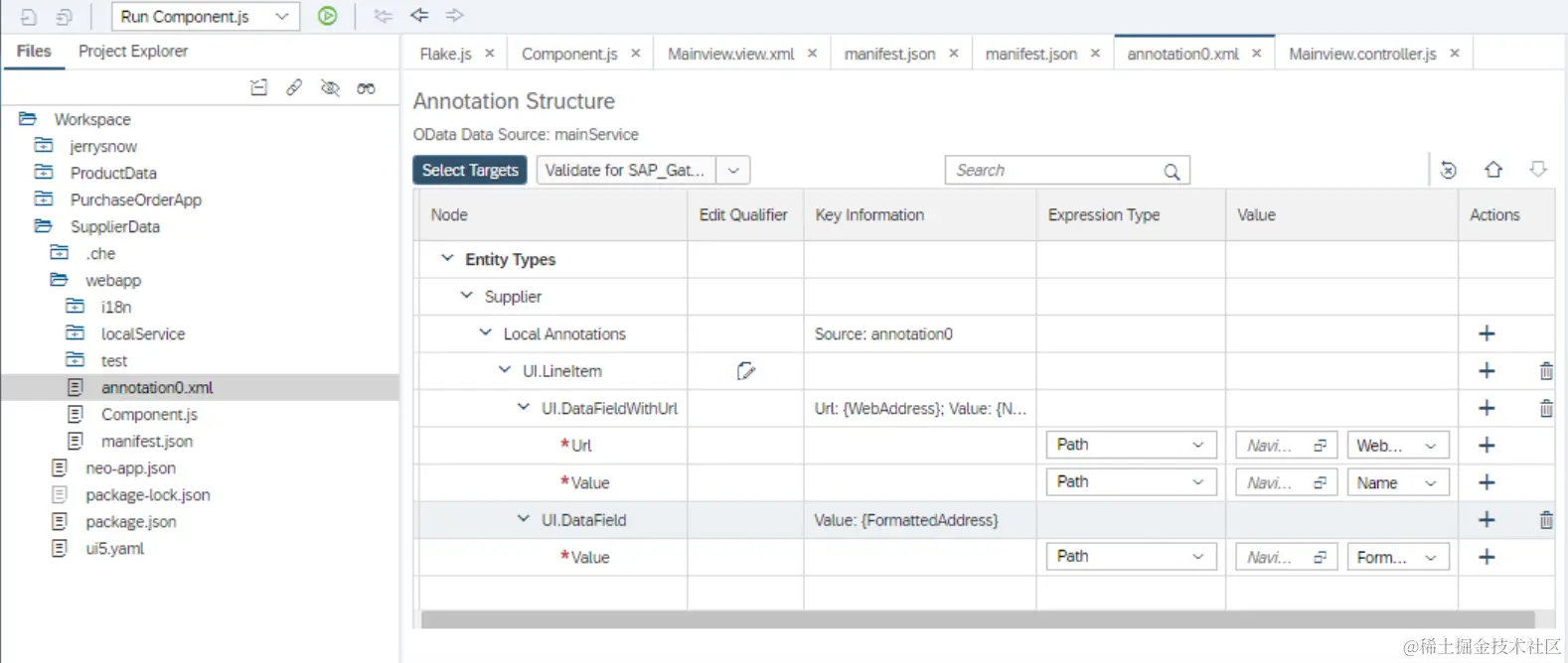 再添加一个UI.DataField注解。这样,在Fiori Elements绘制的表格里出现了两列,分别通过UI.DataFieldWithUrl和UI.DataField实现。