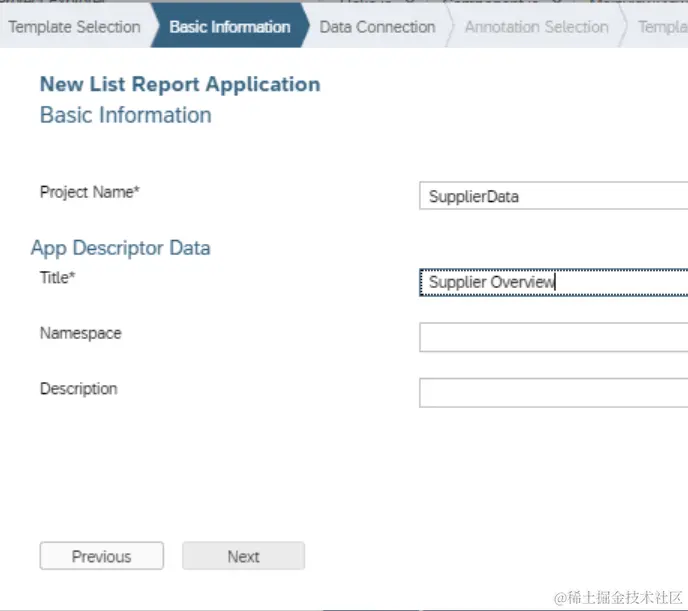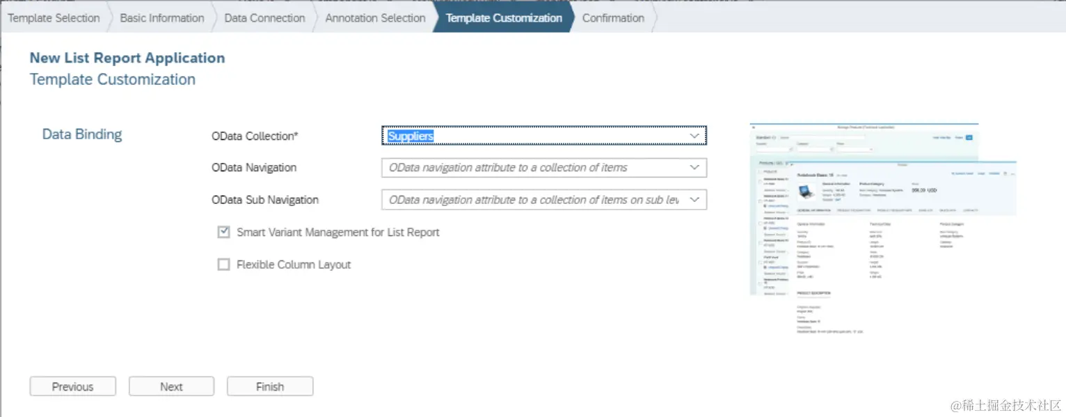 Category选择为SAP Fiori Elements,模板选择为List Report Application: