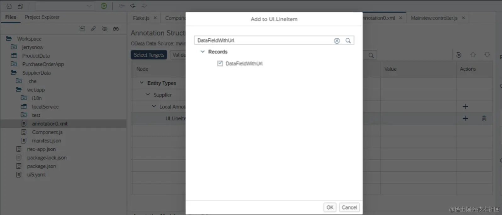 在UI.LineItem下再创建一个DataFieldWithURL注解: