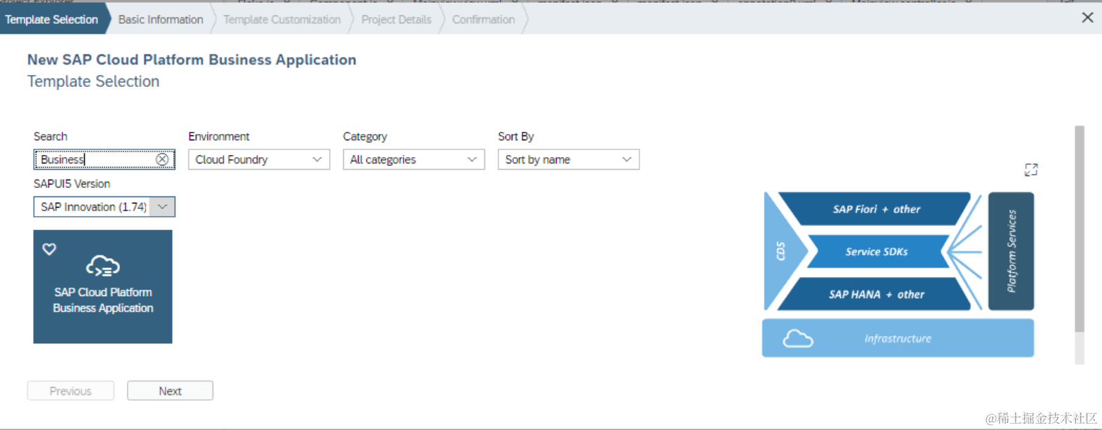 新建一个项目,类型选择SAP Cloud Platform Business Application: