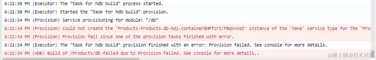 6:21:34 PM (Executor) The “task for hdb build” provision finished with an error: Provision failed. See console for more details.