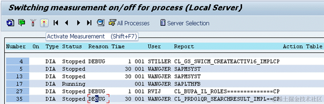 Once BP is triggered, click button highlighted above, select the session and click button “Activate Measurement”.