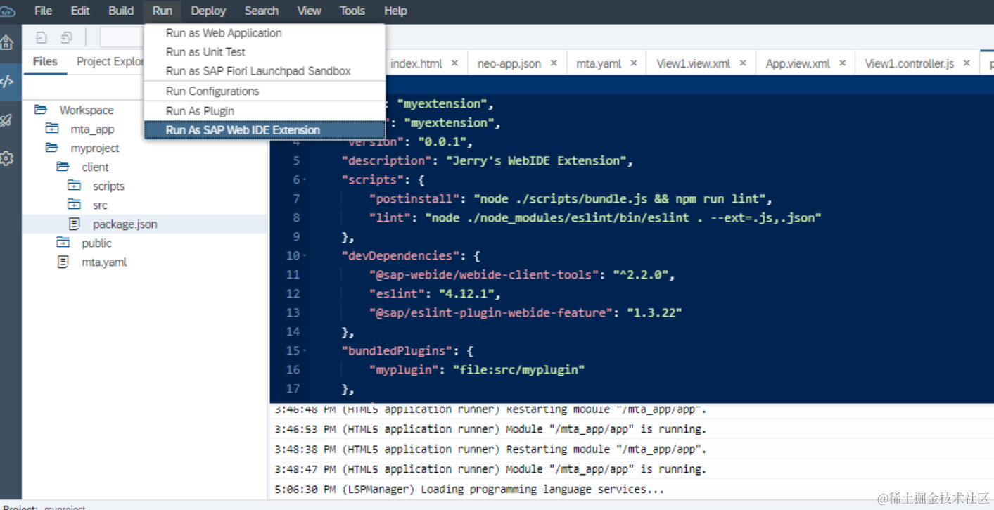 Run As SAP WebIDE Extension菜单会以调试模式打开一个新的SAP WebIDE窗口: