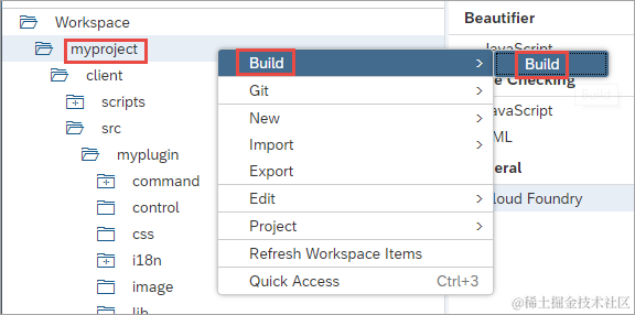 下面将这个extension部署到SAP Cloud Platform上。先在右键菜单里选择Build: