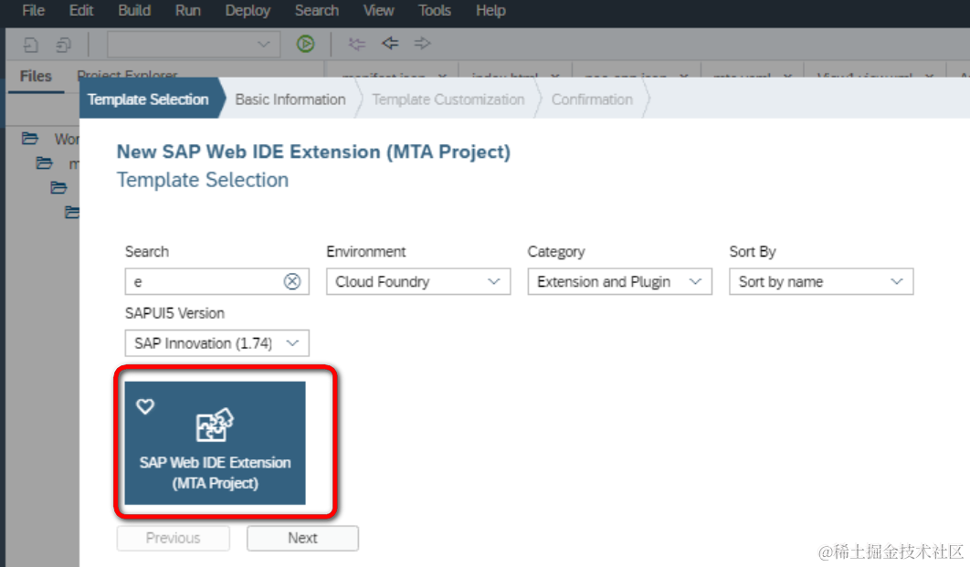 新建一个SAP WebIDE扩展,基于的模板如下,这个项目也是一个MTA项目: