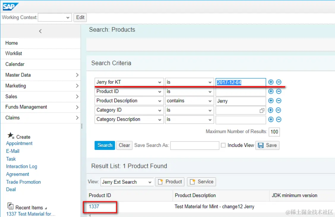 在product search & search result上创建了一个extension field: