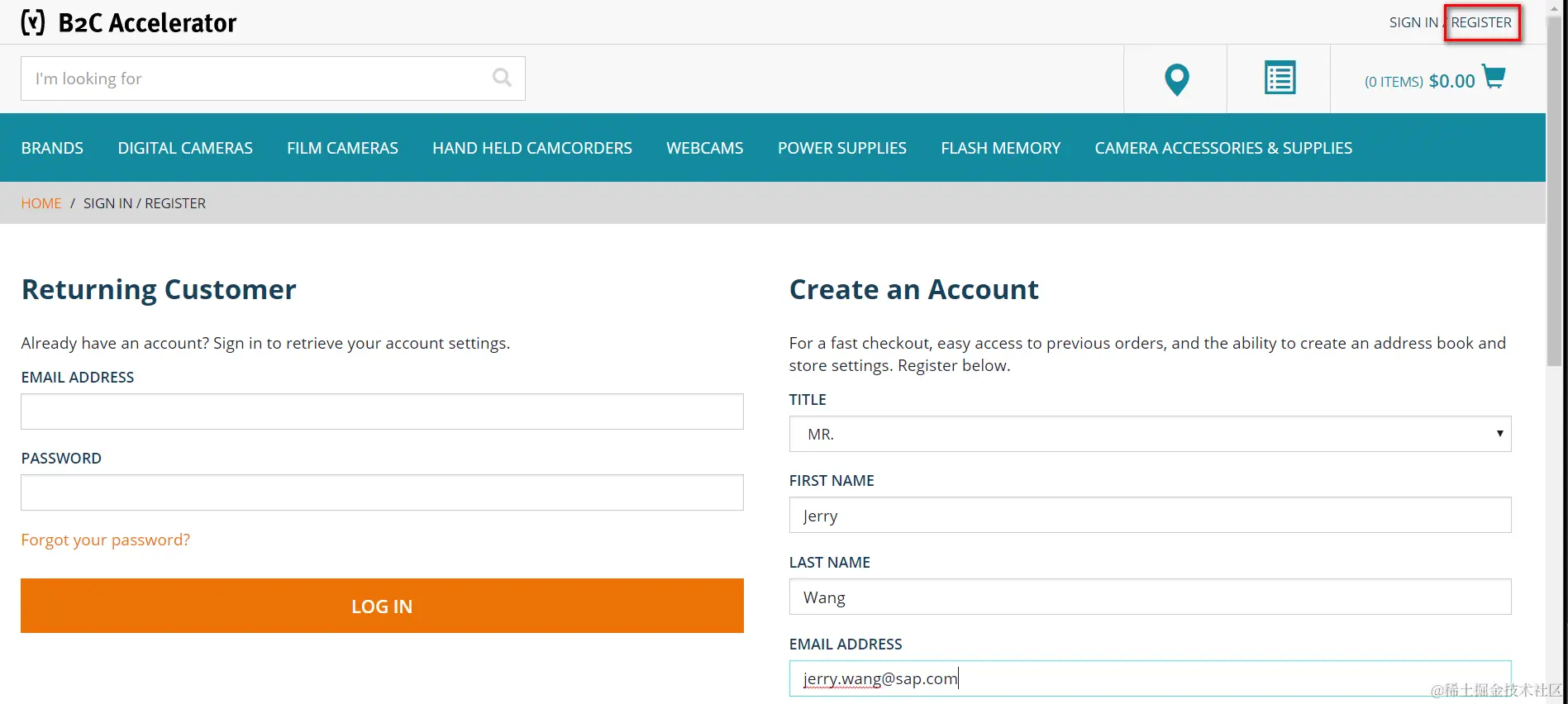 在Hybris storefront注册一个帐号: