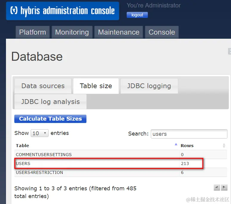 Admin console里可以查看每个DB table有多少条entry: