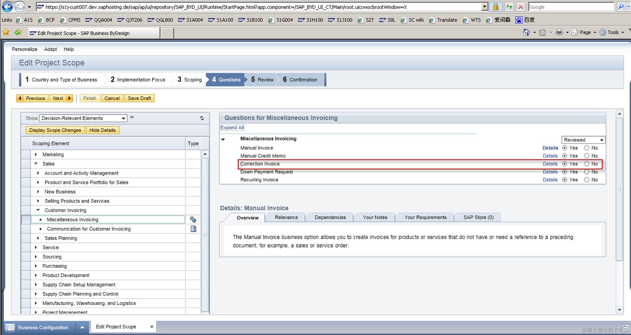 One of the prerequisite is the answer to the question “Correction Invoice” should be selected as Yes in business configuration UI. In S1J/007 the “Yes” has been selected when I checked in Business Configuration work center.