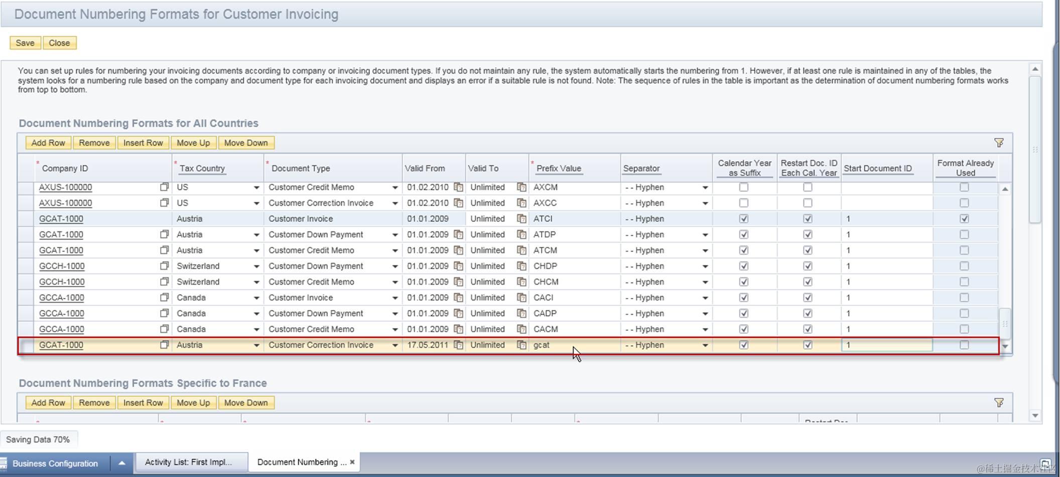 The last prerequisite is the numbering rule for correction invoice for the country should be defined via fine tuning. Otherwise the following error would occur when you save new correction invoice.