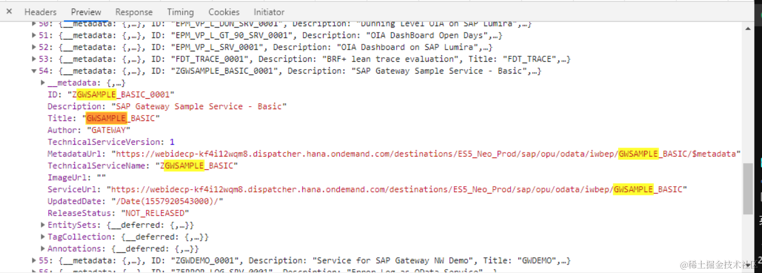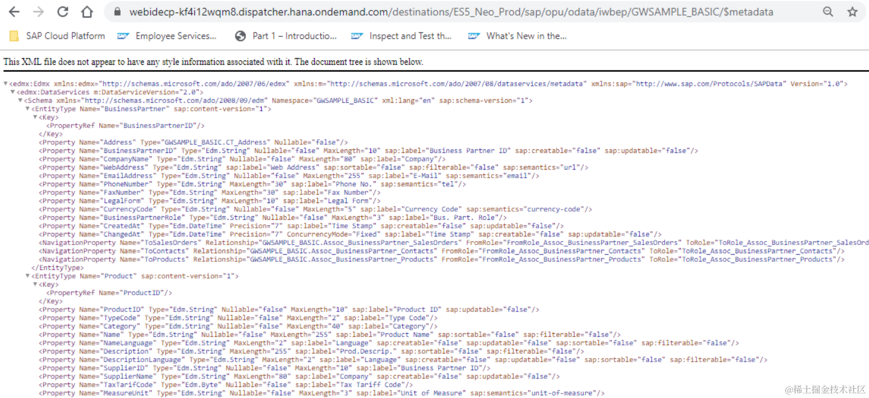 浏览器里访问,能看到这个gateway系统里暴露出的所有OData服务: