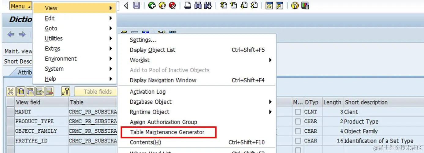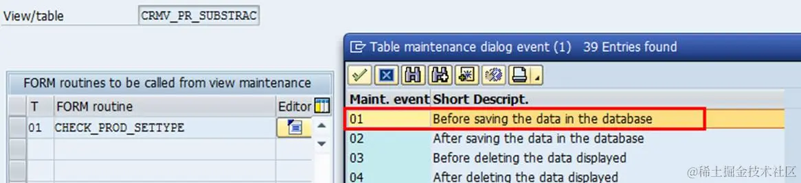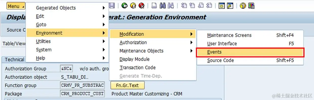 同时SAP提供了一些事件可以加到Maintenance View让USER可以自定义一些逻辑,进入上面的Table Maintenance Generator之后,再进入下面的Menu:
