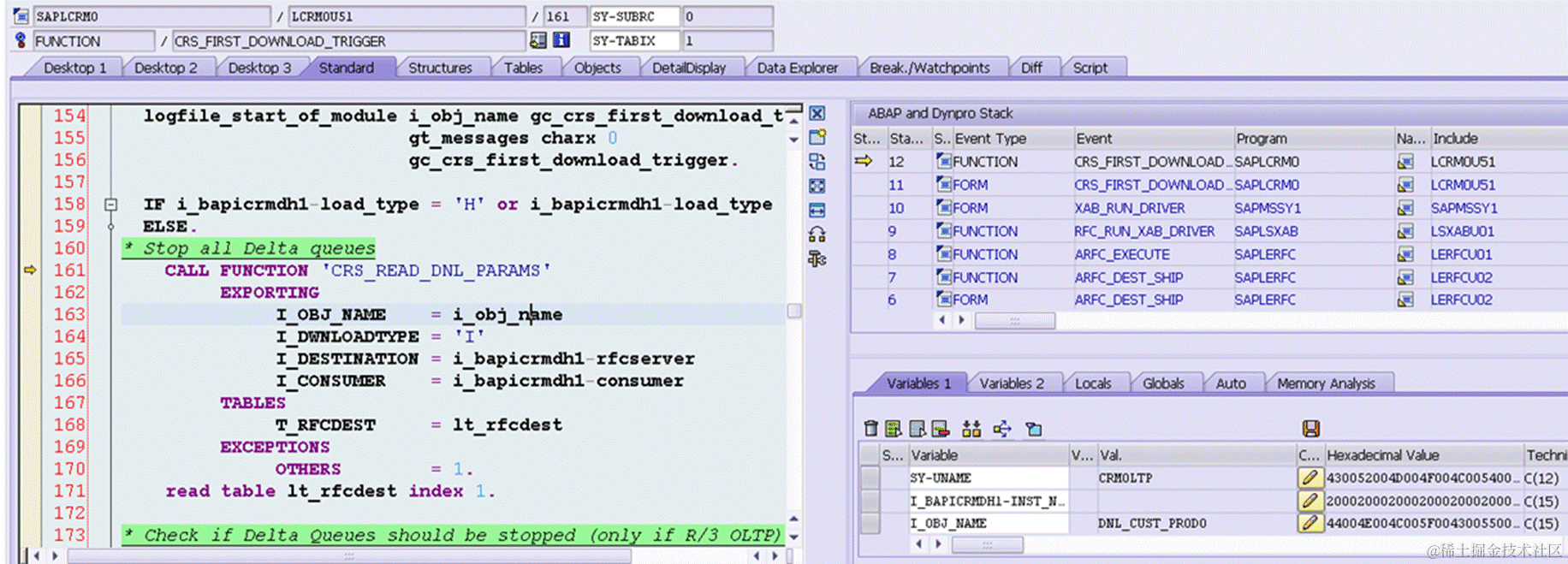 inside this FM CRS_CUSTOMIZING_EXTRACT, there is a dump, you can find it in ST22: