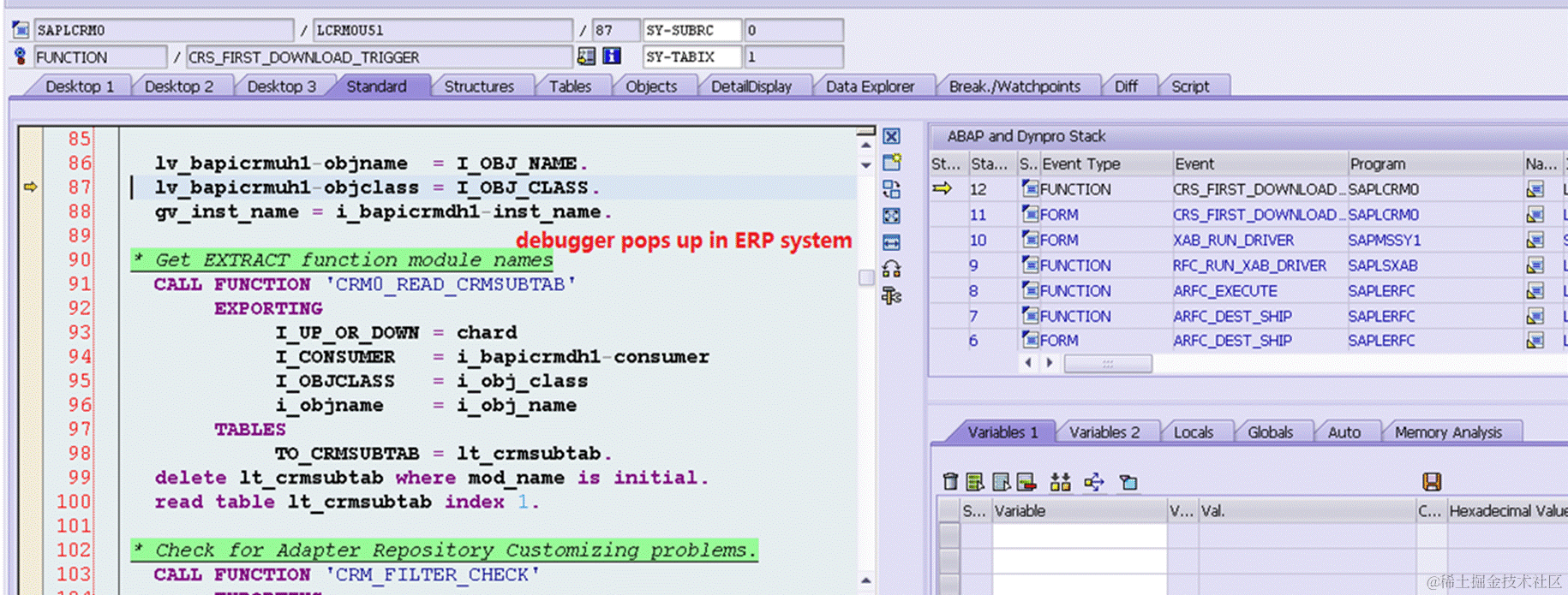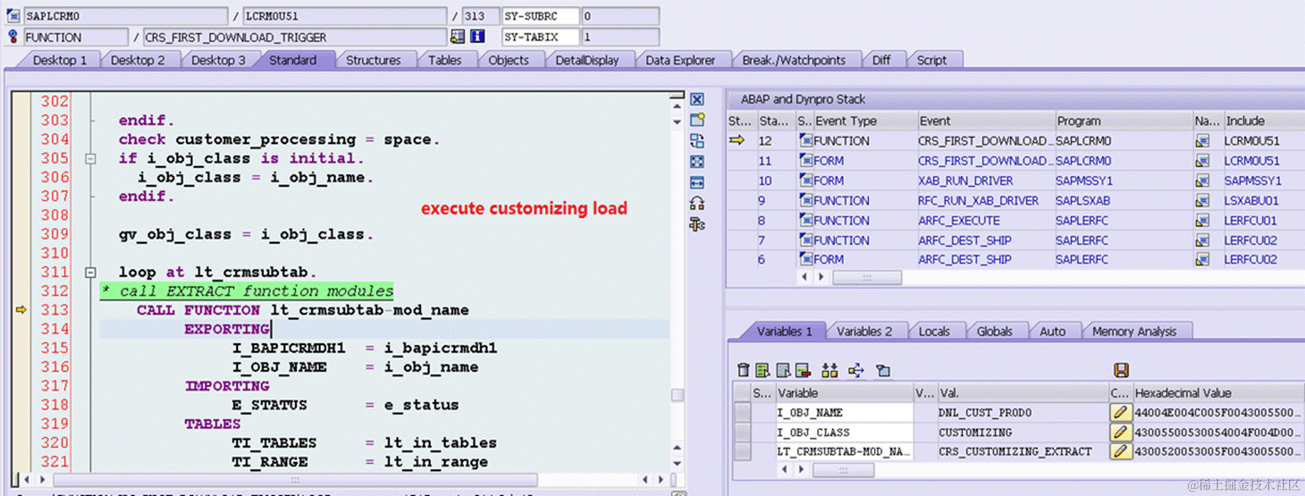 The internal table gt_crmtab[] should not be empty in customizing download scenario.
