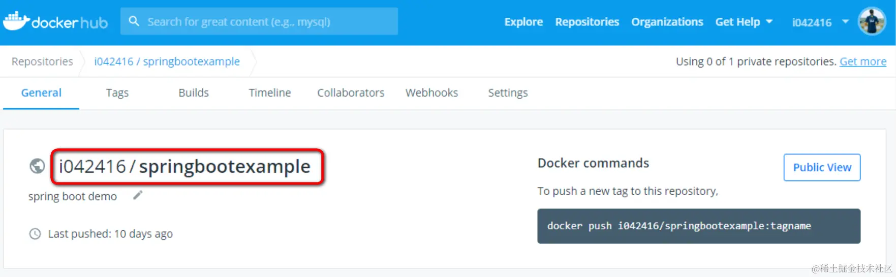 成功之后,能够在Docker Hub上看到推送好的镜像: