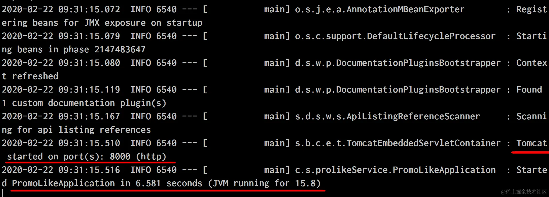 你会看到Tomcat started on port 8000的提示,意思是该应用已经成功启动,监听在本地端口8000上。