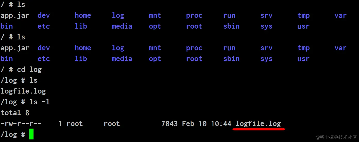 如果该容器已经销毁,我们就可以到宿主机的/var/lib/docker/volumes目录下,查看持久化的日志文件:
