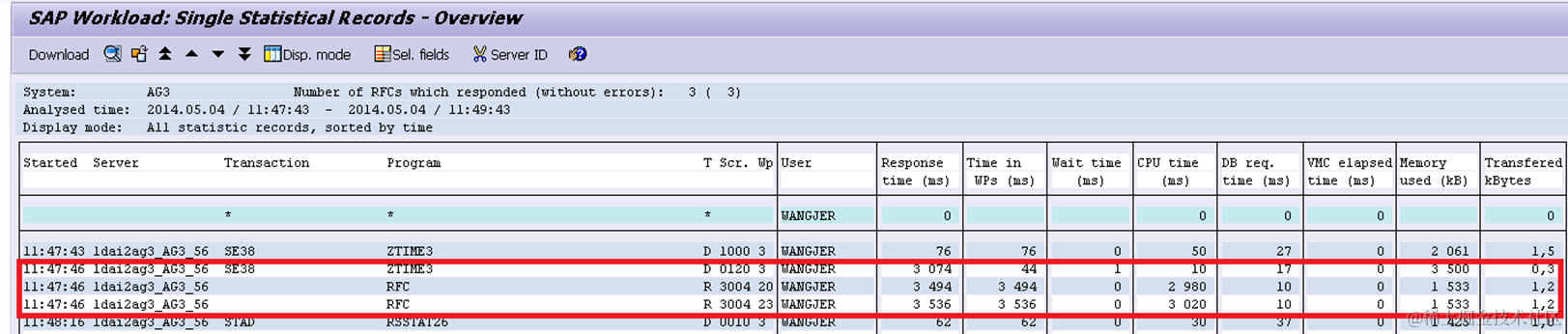 如果在DO 2 TIMES里调用两次ZINSERT, 两次function module call是依次执行的,response time为8.493 seconds