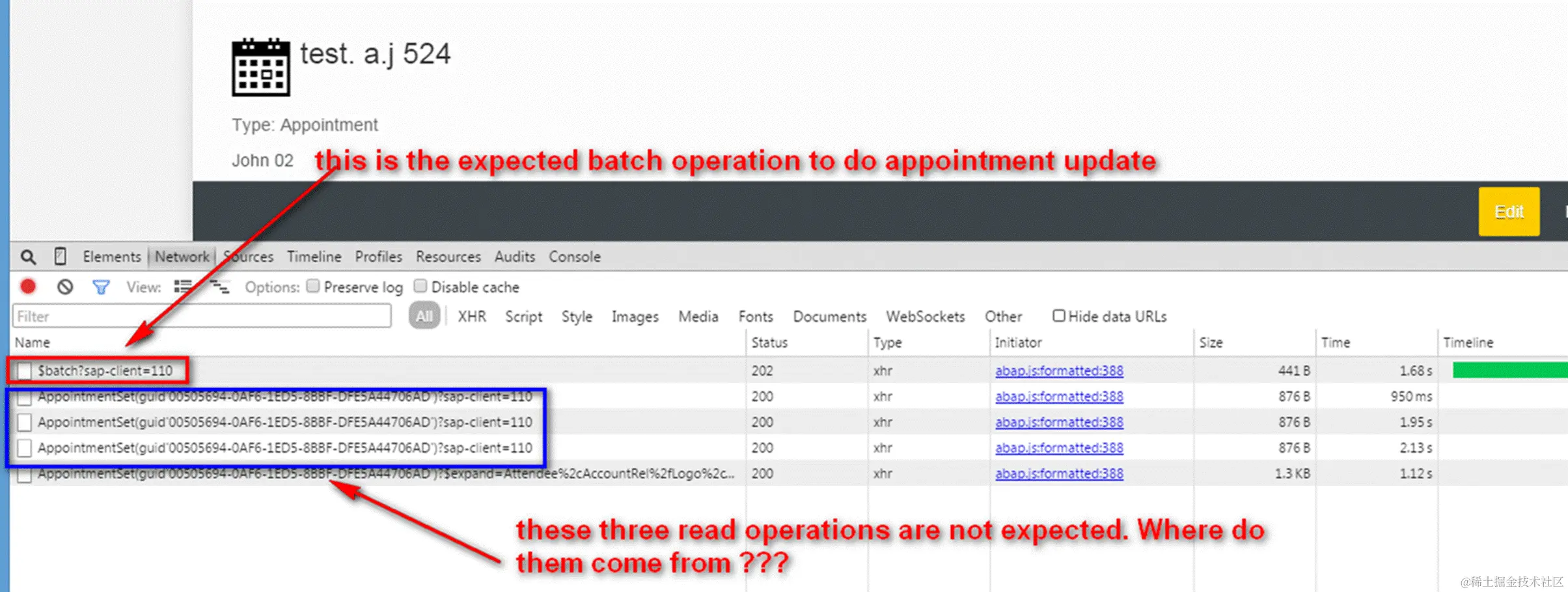 有同事抱怨每次他们保存一个appointment时,除了正常的batch 操作外,还有3个莫名的read 操作。