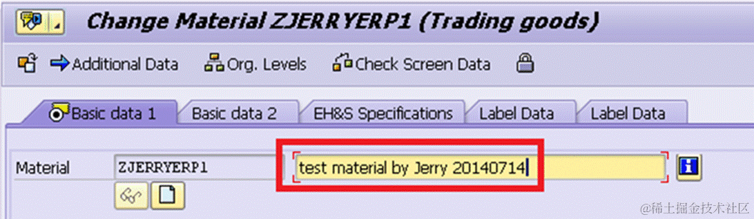 In this example, there is one entry which represents our change on ERP material ZJERRYERP1.