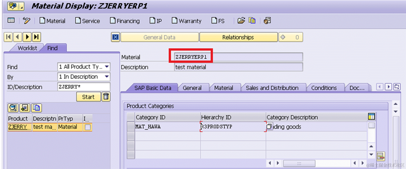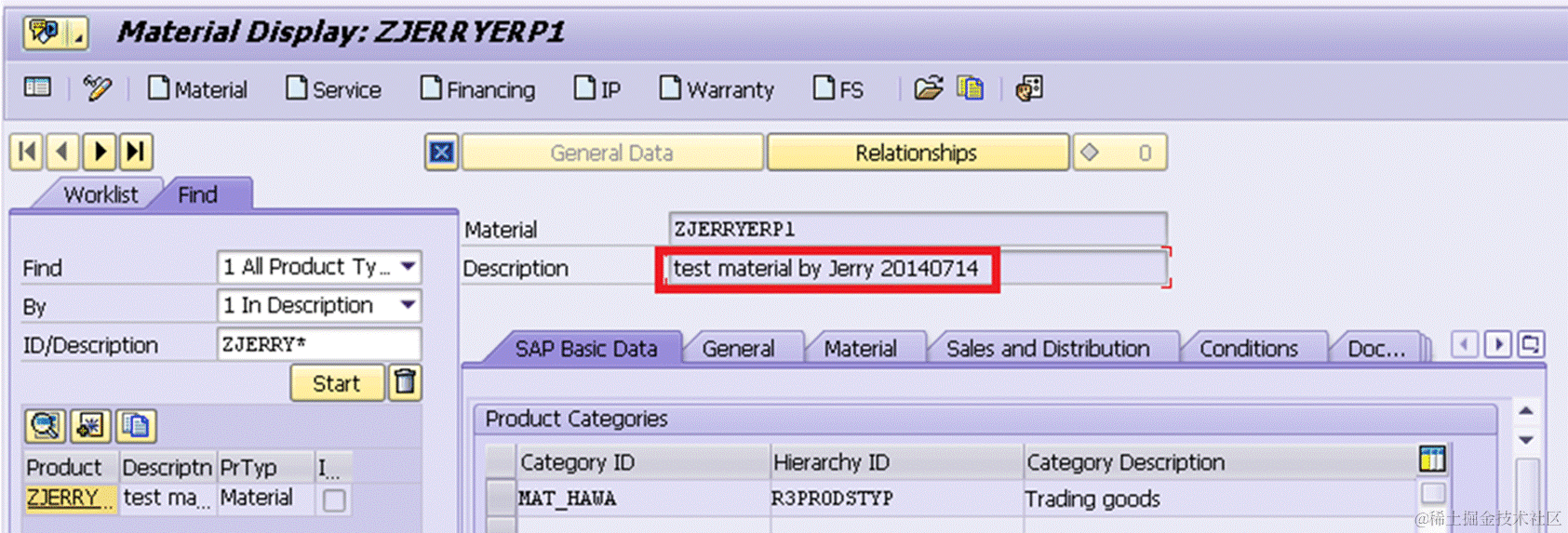 In this case I choose product ZJERRYERP1, whose description is “test material”.
