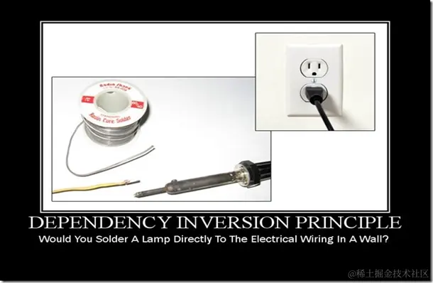 举个例子,墙面的开关不应该依赖于电灯的开关实现,而是应该依赖于一个抽象的开关的标准接口,这样,当我们扩展程序的时候,我们的开关同样可以控制 其它不同的灯,甚至不同的电器。也就是说,电灯和其它电器继承并实现我们的标准开关接口,而我们的开关产商就可不需要关于其要控制什么样的设备,只需要关 心那个标准的开关标准。这就是依赖倒置原则。这就好像浏览器并不依赖于后面的web服务器,其只依赖于HTTP协议。