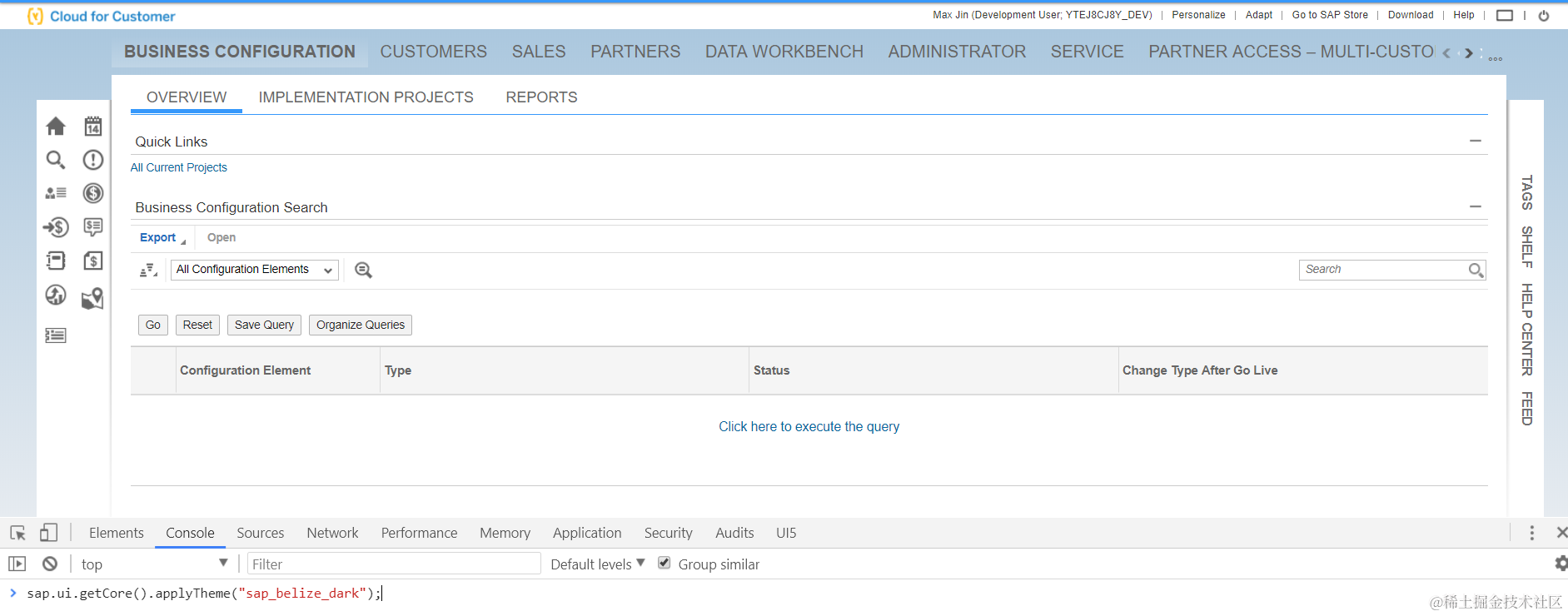 存在更快捷的办法切换theme: 在console里执行sap.ui.getCore().applyTheme(“sap_belize_dark”);