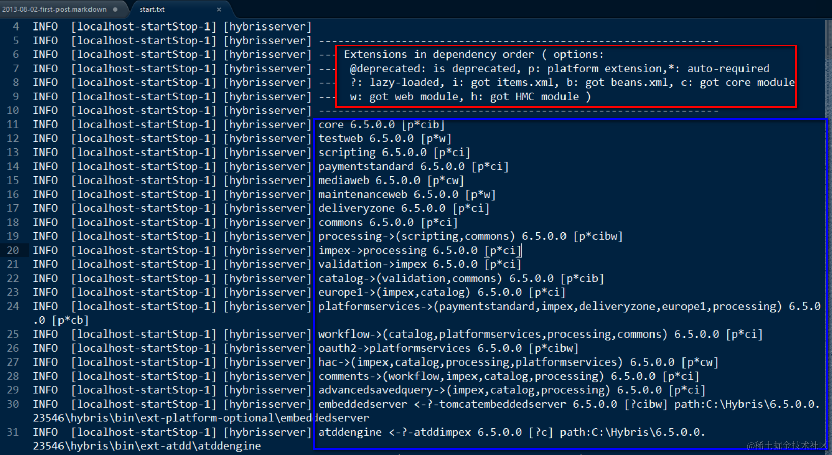 Hybris启动时加载的extension列表: