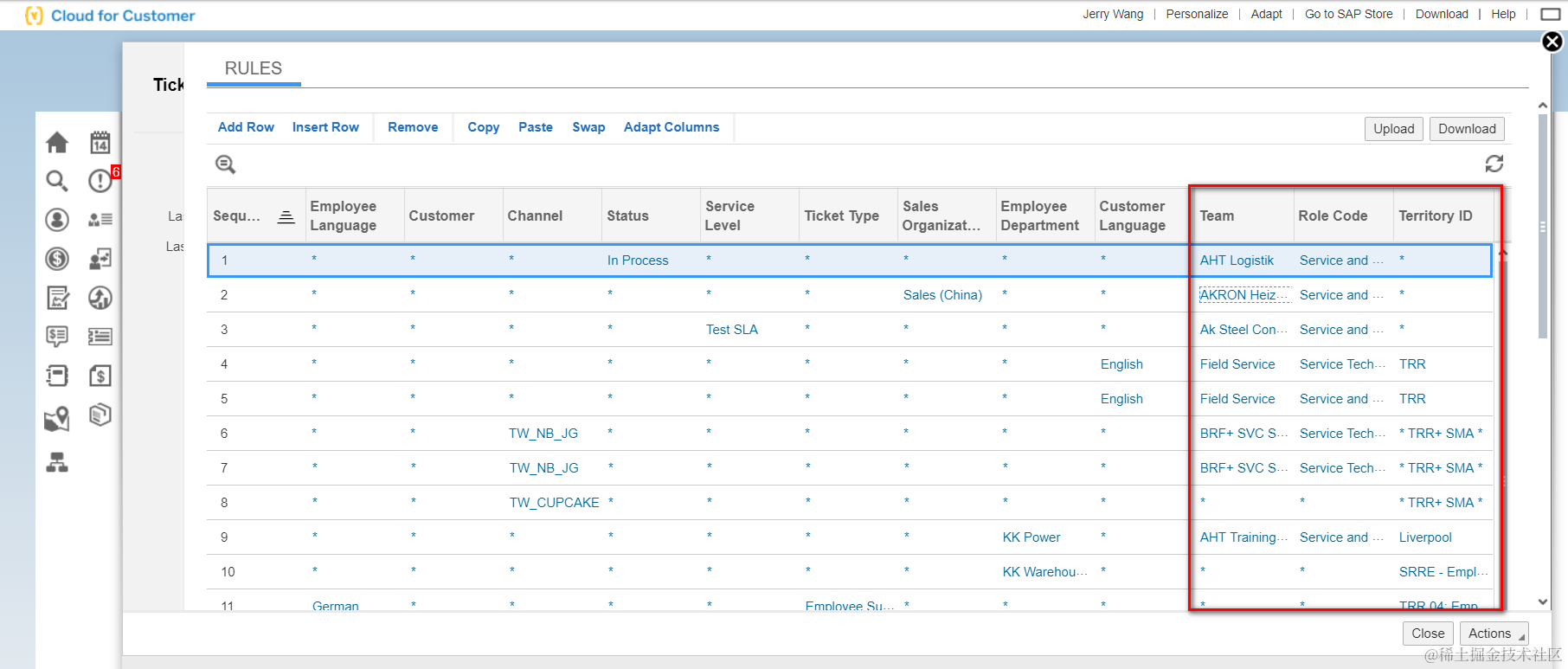 和SAP许多其他产品的determination套路一样,同一列之间的不同column是AND关系,不同列之间是OR关系。