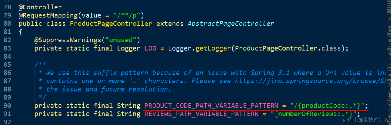 感谢Spring MVC的@RequestMapping, 让上图的url能够自动匹配到下图的ProductPageController。