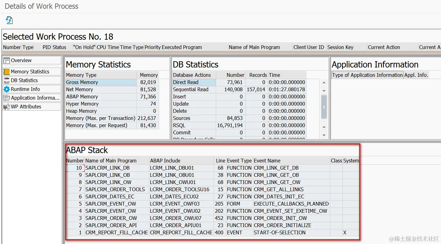 这个功能相当于ABAP的SM50里双击某个dialog process看到的detail callstack。