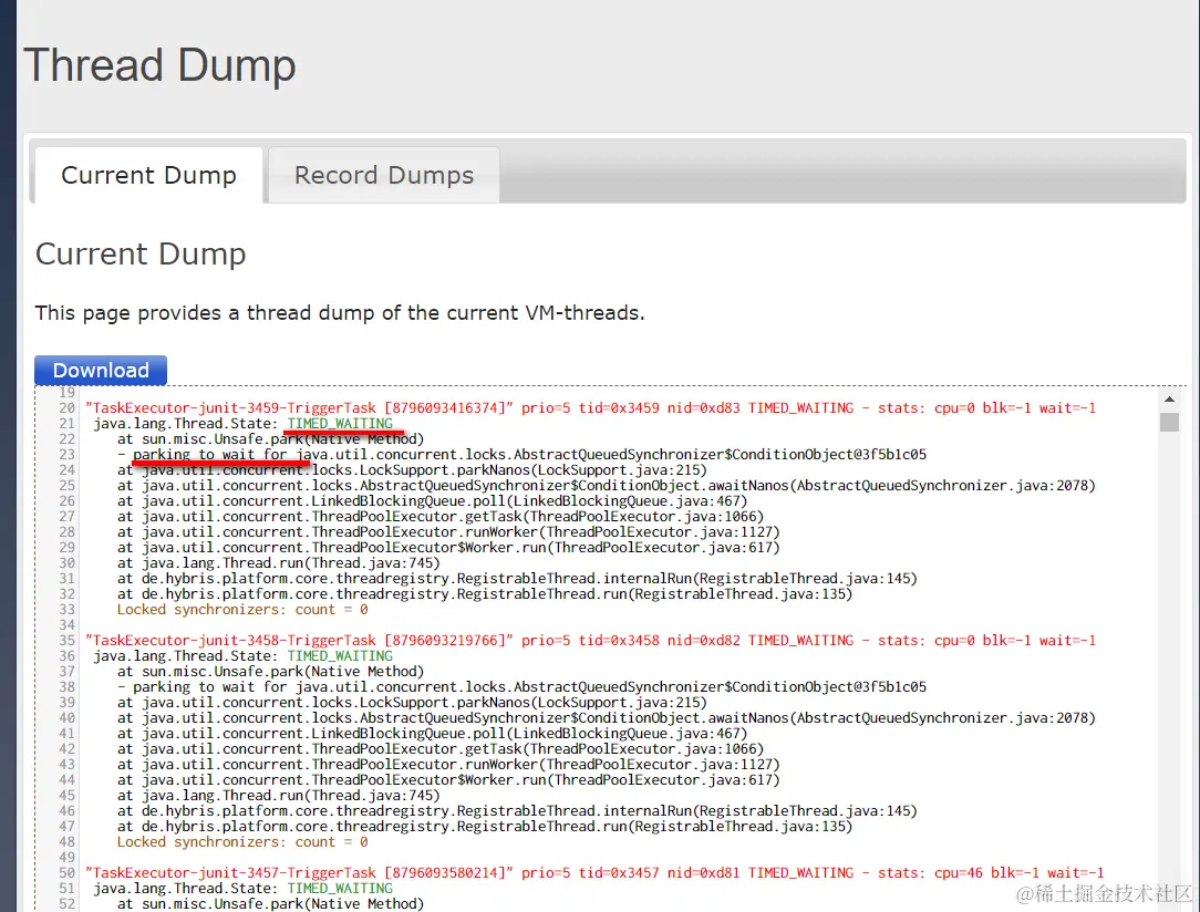 “TaskExecutor-junit-3459-TriggerTask [8796093416374]” prio=5 tid=0x3459 nid=0xd83 TIMED_WAITING - stats: cpu=0 blk=-1 wait=-1