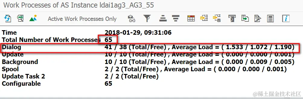 ABAP的SM50查看当前server可用的dialog process。