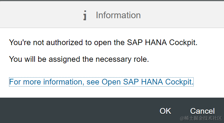 打开SAP HANA Cockpit, 选择OK: