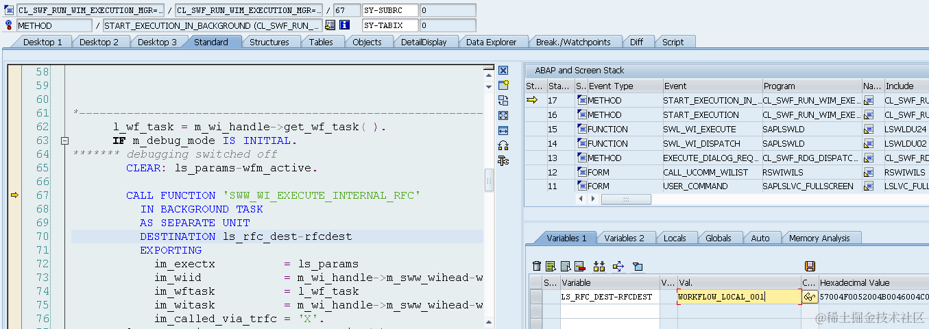 Once you finished debugging, you can go back to SWI1 and three background steps have already been marked as COMPLETED.