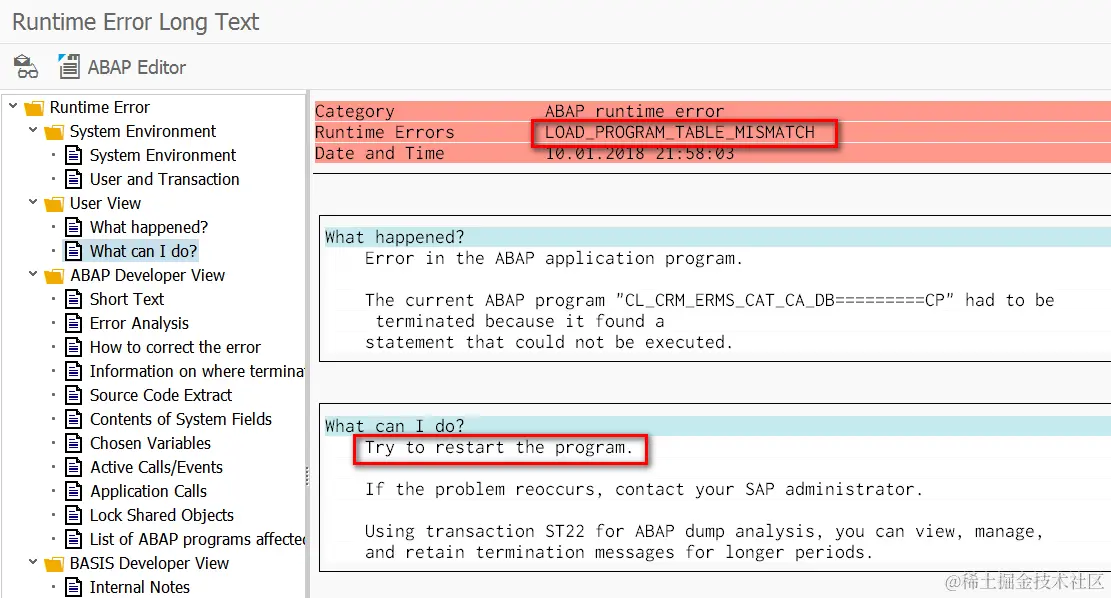 如果正在运行一个transaction,这个时候系统有一个transport request import进来, 这个TR包含了一些DDIC object的change, 并且这些DDIC object正在被当前transaction使用,就会出现这个exception: