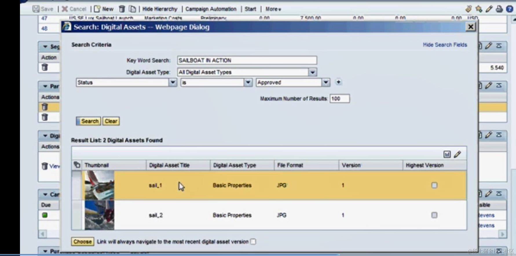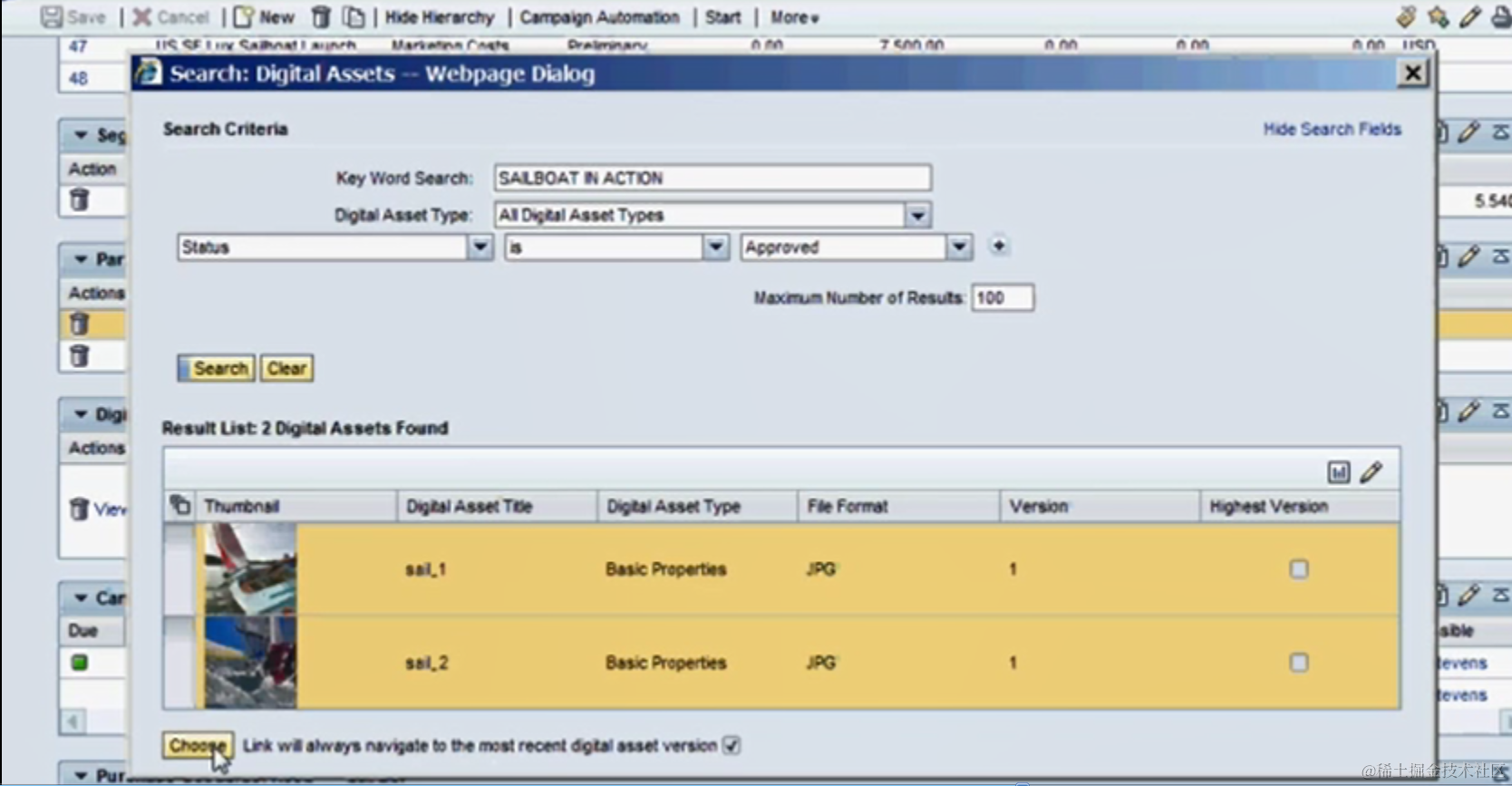 Once “Choose” button is pressed, the two selected assets will be displayed in assignment block.